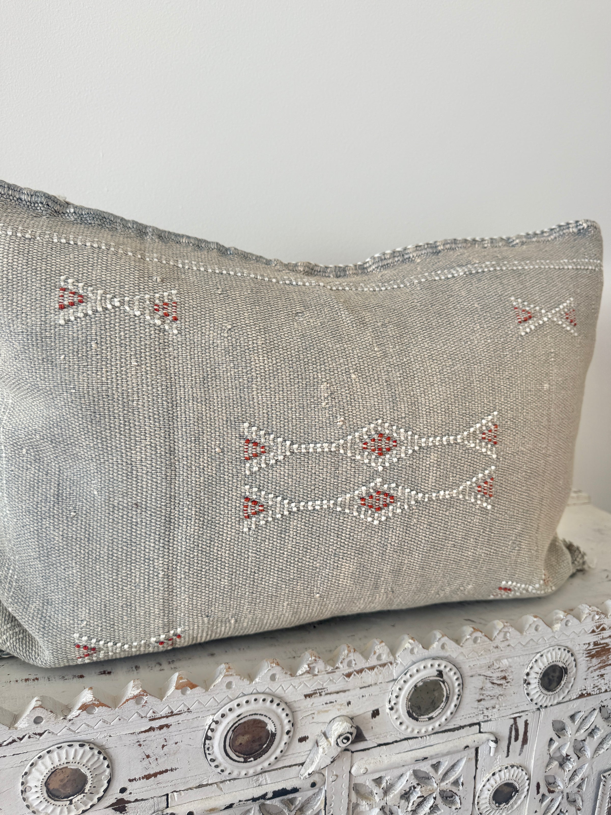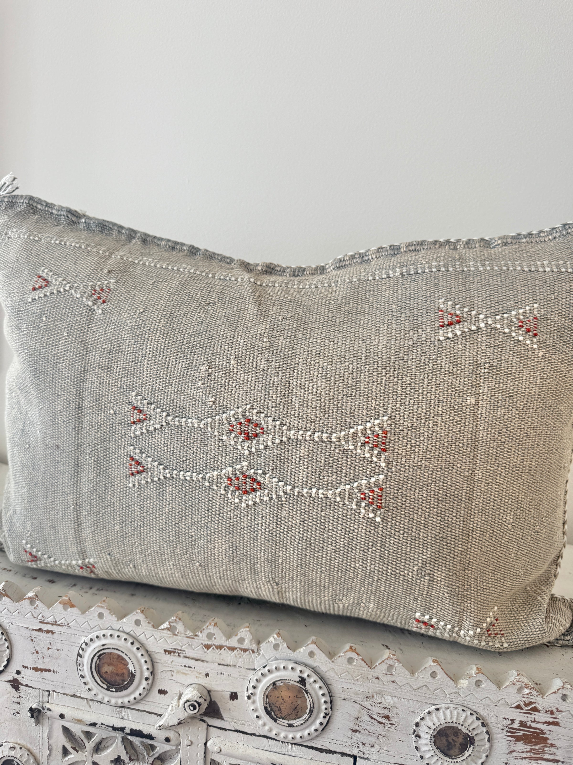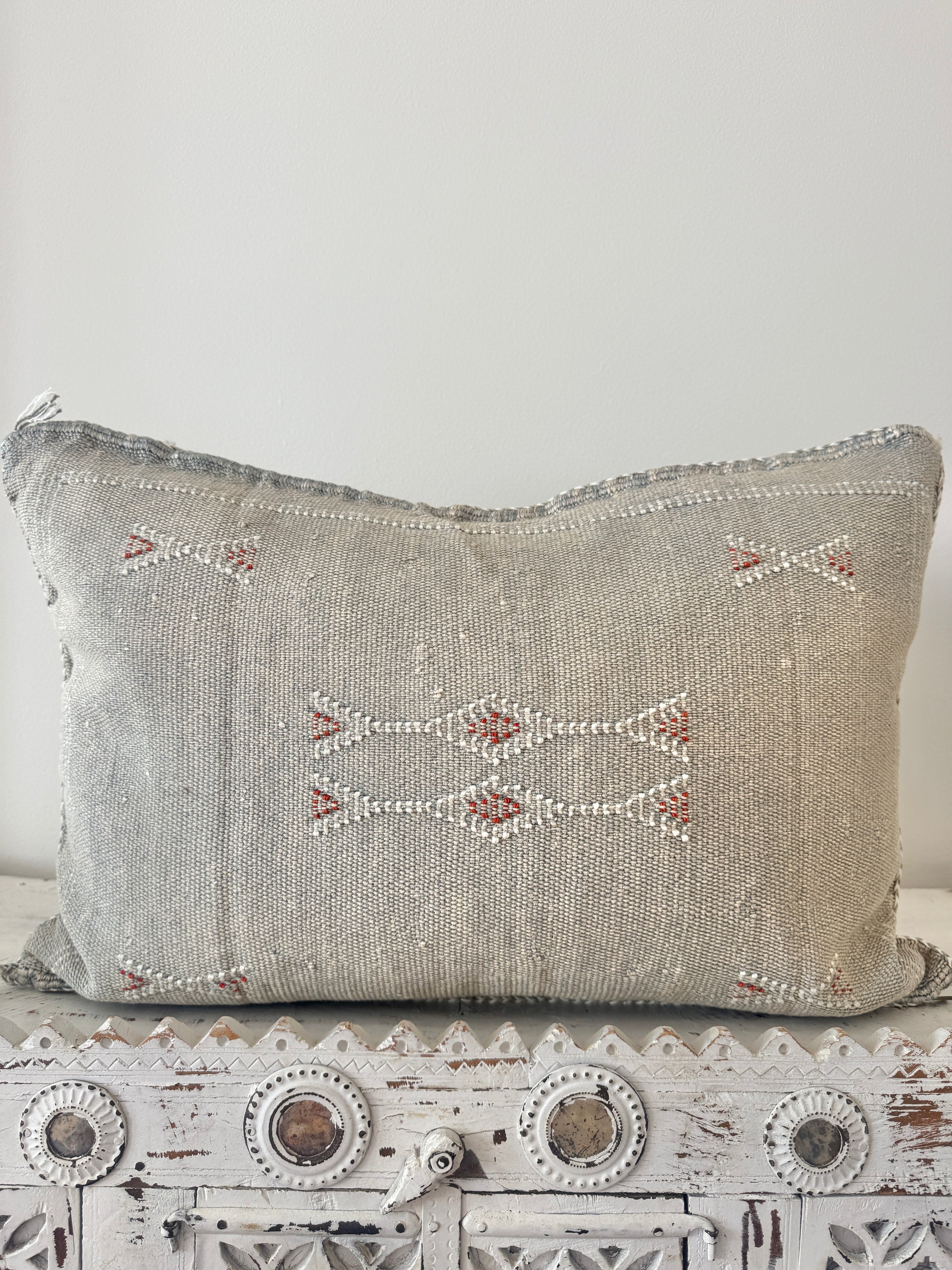 Many of our Moroccan products are handmade, vintage, and one-of a kind. Each piece varies in make, colour, design, size, and feature. It is not uncommon to have uneven stitching, different coloured stitching in areas and small imperfections these unique cushions are not made perfectly by a machine. Each is handmade by our artisans in Morocco and most are one of a kind, however sometimes we can get 2 or 3 of the same cushion. If you are after 2 of the same simply add to your cart and see if it allows you to check out if not then you know there is only one in stock or please don’t hesitate to contact us. We do our best to photograph the uniqueness of each item and provide adequate details. If you are looking for something specific, we recommend that you contact us directly so we may support you getting exactly what you are looking for and avoid exchange shipping fees.