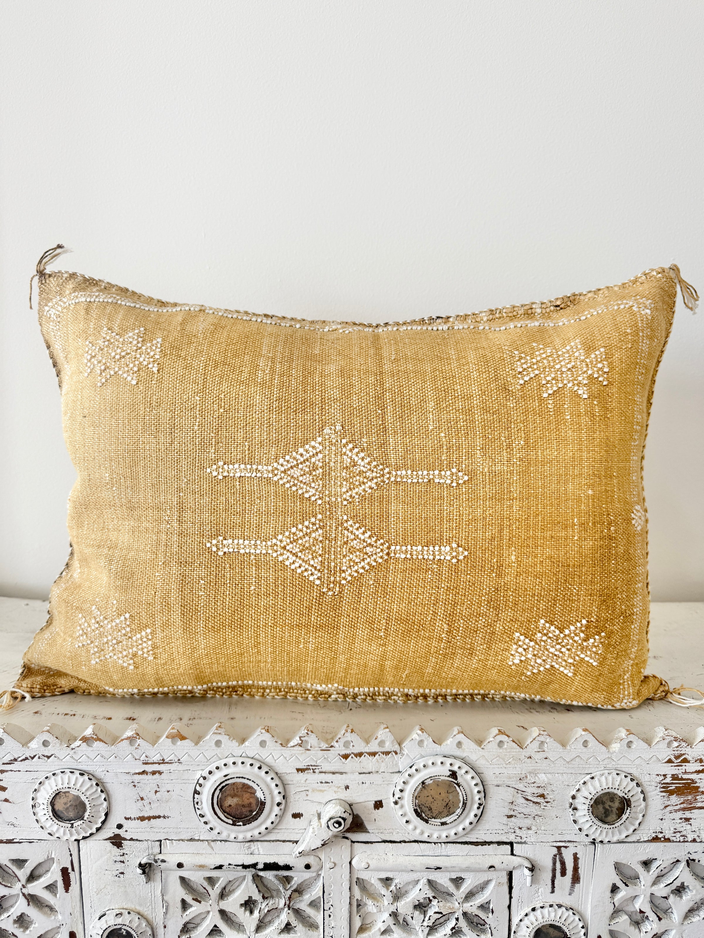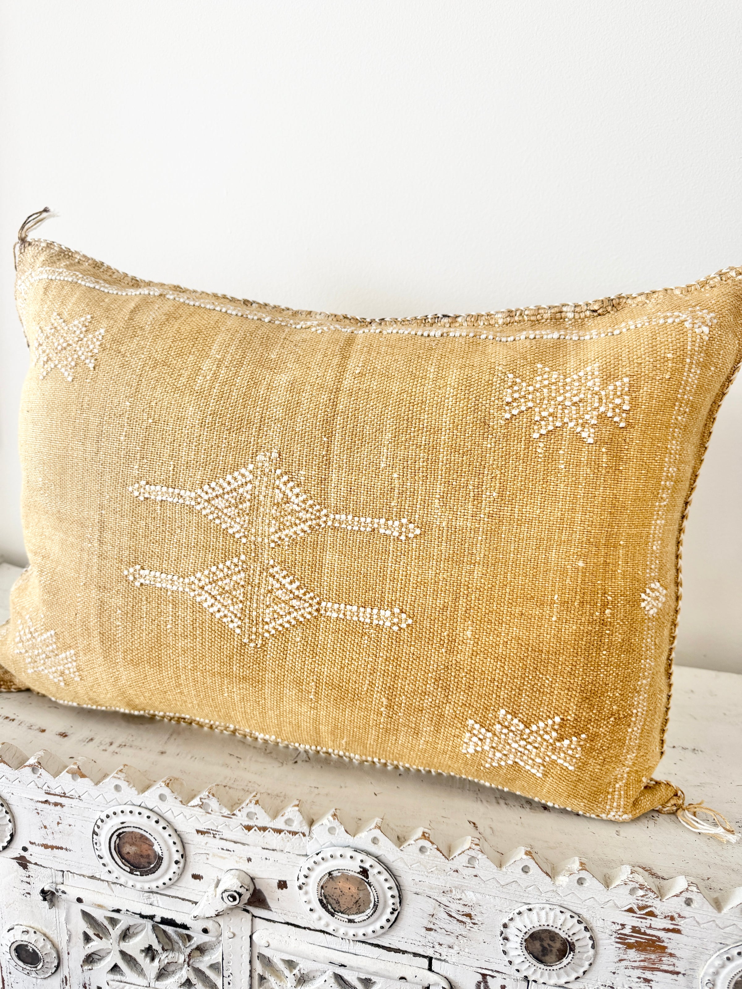Many of our Moroccan products are handmade, vintage, and one-of a kind. Each piece varies in make, colour, design, size, and feature. It is not uncommon to have uneven stitching, different coloured stitching in areas and small imperfections these unique cushions are not made perfectly by a machine. Each is handmade by our artisans in Morocco and most are one of a kind, however sometimes we can get 2 or 3 of the same cushion. If you are after 2 of the same simply add to your cart and see if it allows you to check out if not then you know there is only one in stock or please don’t hesitate to contact us. We do our best to photograph the uniqueness of each item and provide adequate details. If you are looking for something specific, we recommend that you contact us directly so we may support you getting exactly what you are looking for and avoid exchange shipping fees.