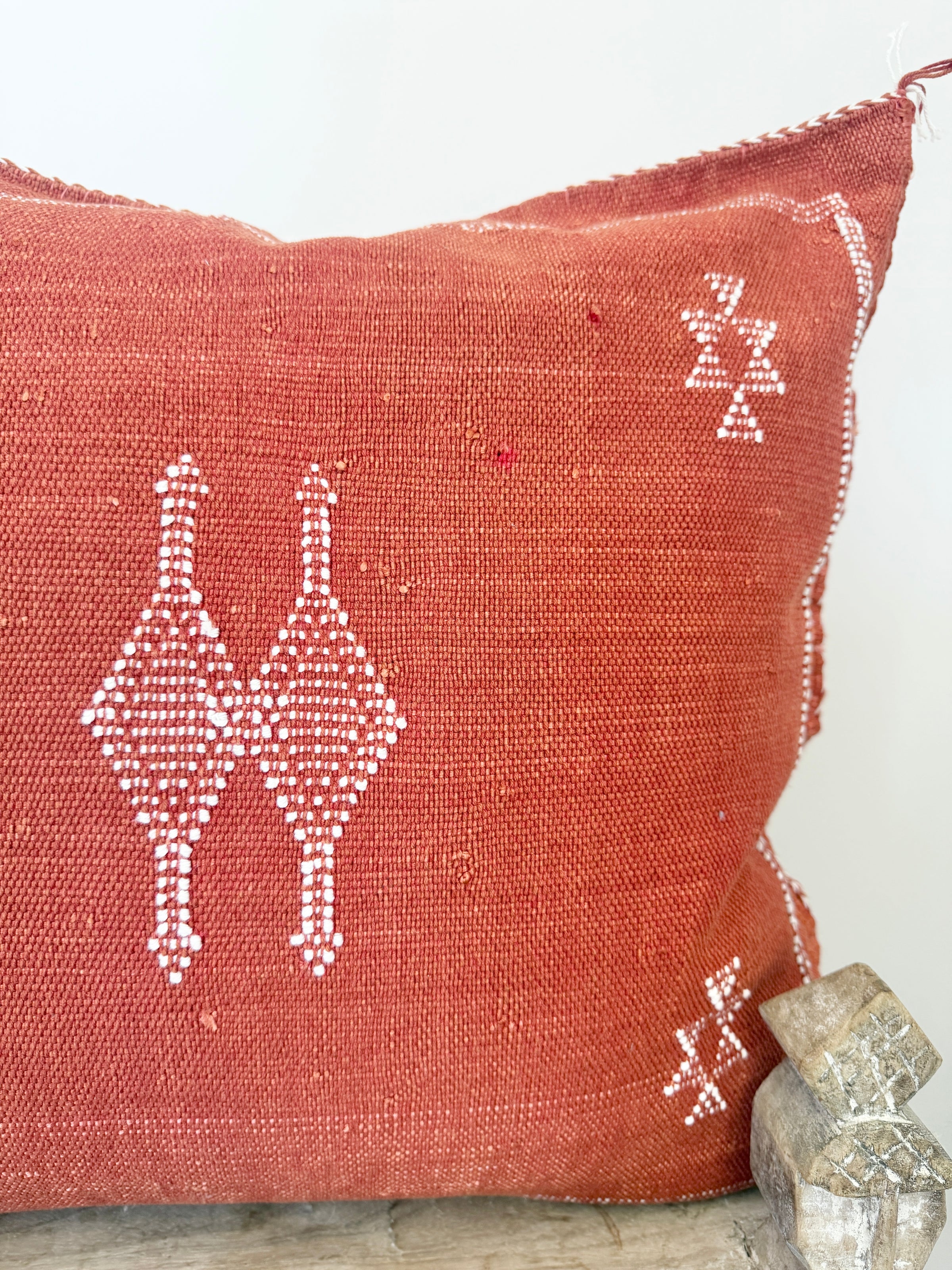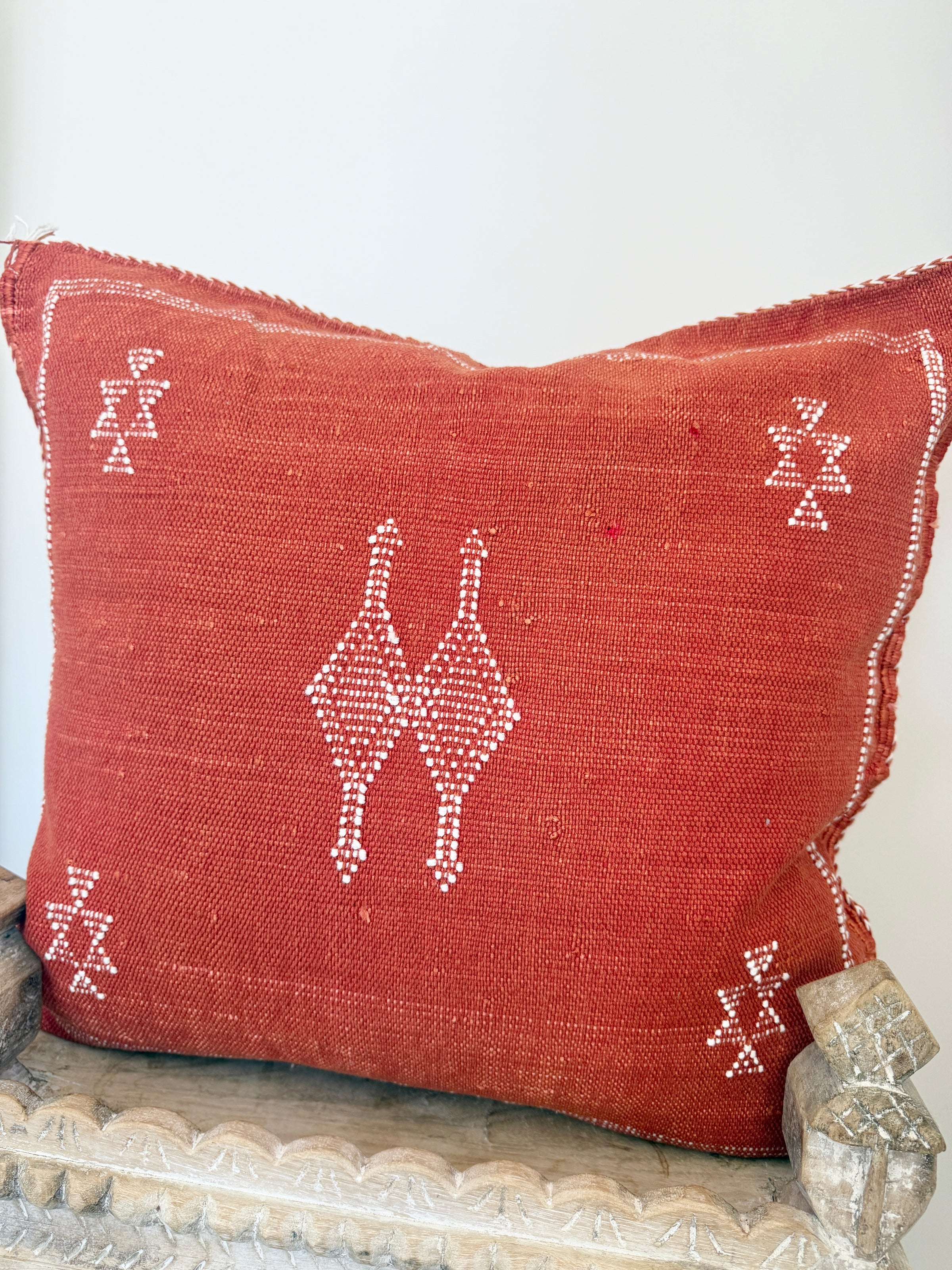 Many of our Moroccan products are handmade, vintage, and one-of a kind. Each piece varies in make, colour, design, size, and feature. It is not uncommon to have uneven stitching, different coloured stitching in areas and small imperfections these unique cushions are not made perfectly by a machine. Each is handmade by our artisans in Morocco and most are one of a kind, however sometimes we can get 2 or 3 of the same cushion. If you are after 2 of the same simply add to your cart and see if it allows you to check out if not then you know there is only one in stock or please don’t hesitate to contact us. We do our best to photograph the uniqueness of each item and provide adequate details. If you are looking for something specific, we recommend that you contact us directly so we may support you getting exactly what you are looking for and avoid exchange shipping fees.