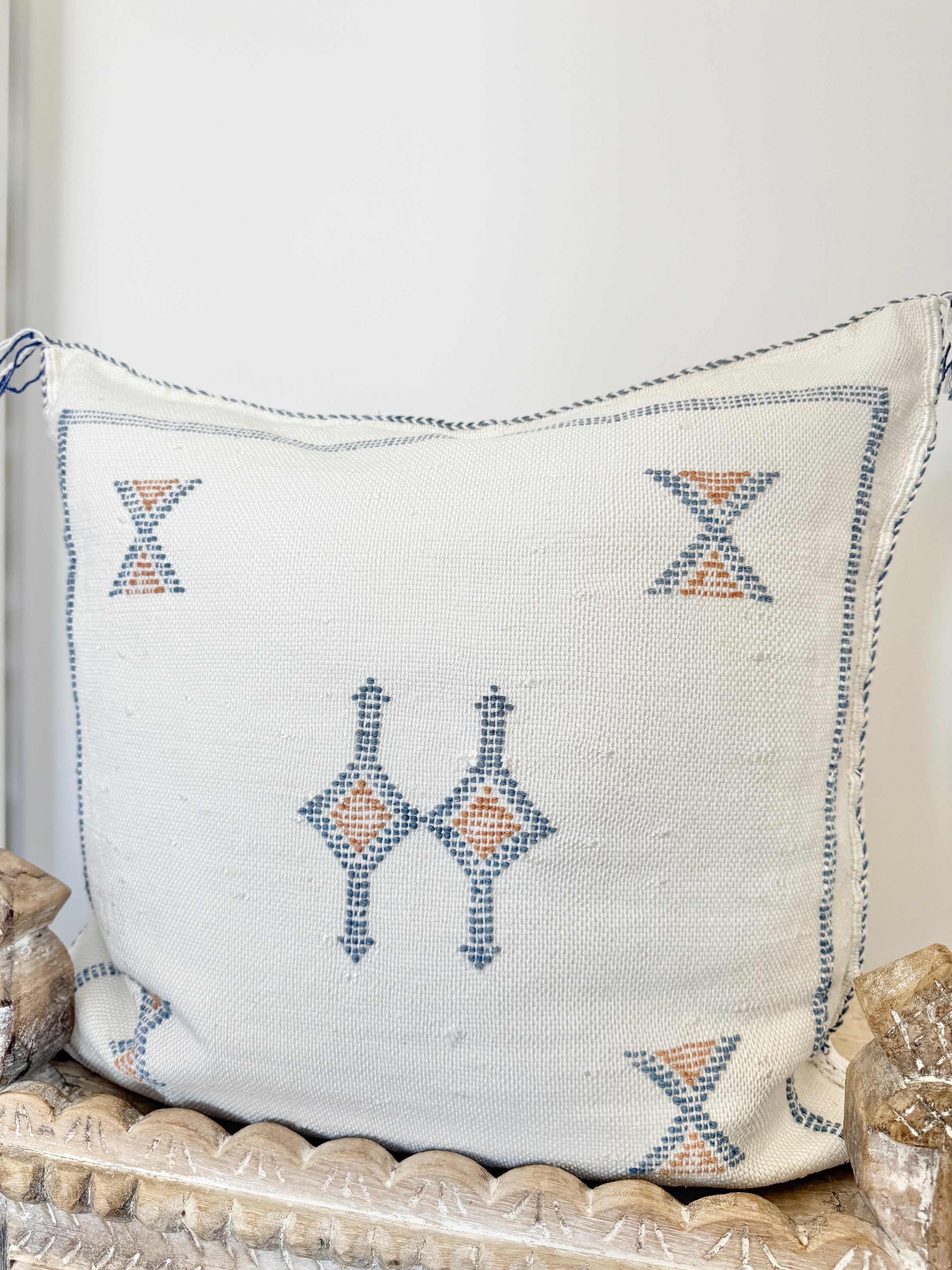 Many of our Moroccan products are handmade, vintage, and one-of a kind. Each piece varies in make, colour, design, size, and feature. It is not uncommon to have uneven stitching, different coloured stitching in areas and small imperfections these unique cushions are not made perfectly by a machine. Each is handmade by our artisans in Morocco and most are one of a kind, however sometimes we can get 2 or 3 of the same cushion. If you are after 2 of the same simply add to your cart and see if it allows you to check out if not then you know there is only one in stock or please don’t hesitate to contact us. We do our best to photograph the uniqueness of each item and provide adequate details. If you are looking for something specific, we recommend that you contact us directly so we may support you getting exactly what you are looking for and avoid exchange shipping fees.
