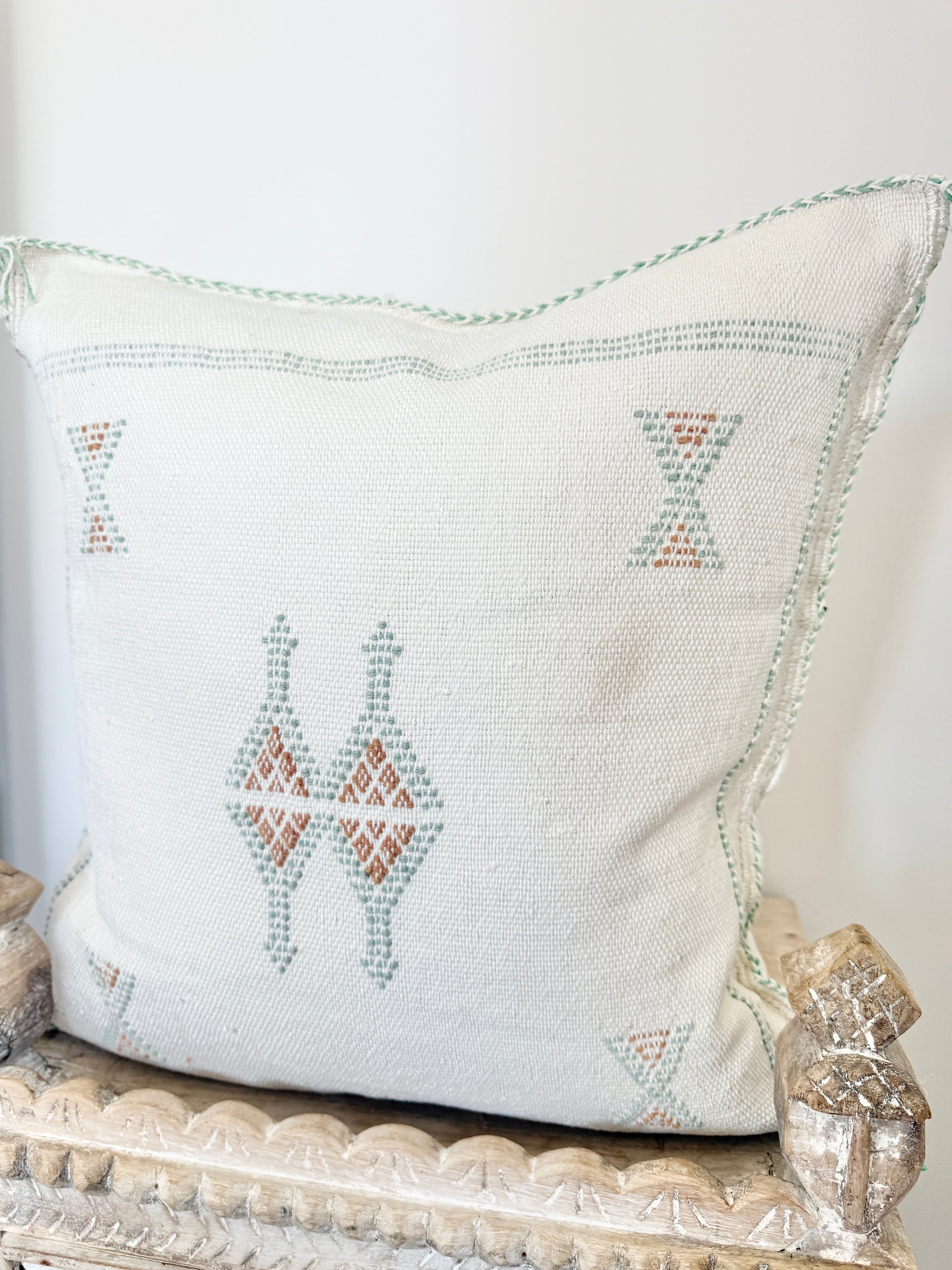 Many of our Moroccan products are handmade, vintage, and one-of a kind. Each piece varies in make, colour, design, size, and feature. It is not uncommon to have uneven stitching, different coloured stitching in areas and small imperfections these unique cushions are not made perfectly by a machine. Each is handmade by our artisans in Morocco and most are one of a kind, however sometimes we can get 2 or 3 of the same cushion. If you are after 2 of the same simply add to your cart and see if it allows you to check out if not then you know there is only one in stock or please don’t hesitate to contact us. We do our best to photograph the uniqueness of each item and provide adequate details. If you are looking for something specific, we recommend that you contact us directly so we may support you getting exactly what you are looking for and avoid exchange shipping fees.