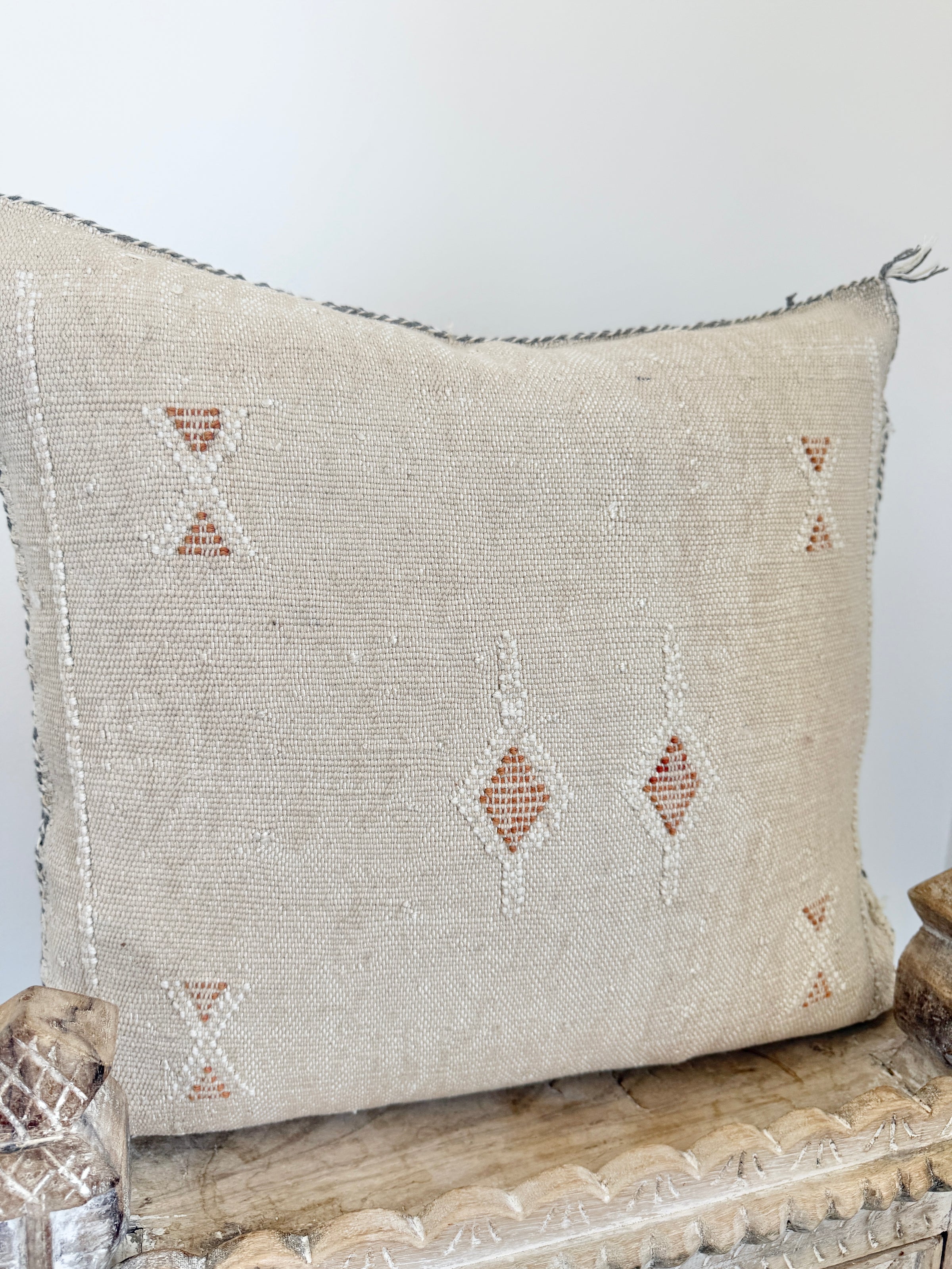 Many of our Moroccan products are handmade, vintage, and one-of a kind. Each piece varies in make, colour, design, size, and feature. It is not uncommon to have uneven stitching, different coloured stitching in areas and small imperfections these unique cushions are not made perfectly by a machine. Each is handmade by our artisans in Morocco and most are one of a kind, however sometimes we can get 2 or 3 of the same cushion. If you are after 2 of the same simply add to your cart and see if it allows you to check out if not then you know there is only one in stock or please don’t hesitate to contact us. We do our best to photograph the uniqueness of each item and provide adequate details. If you are looking for something specific, we recommend that you contact us directly so we may support you getting exactly what you are looking for and avoid exchange shipping fees.