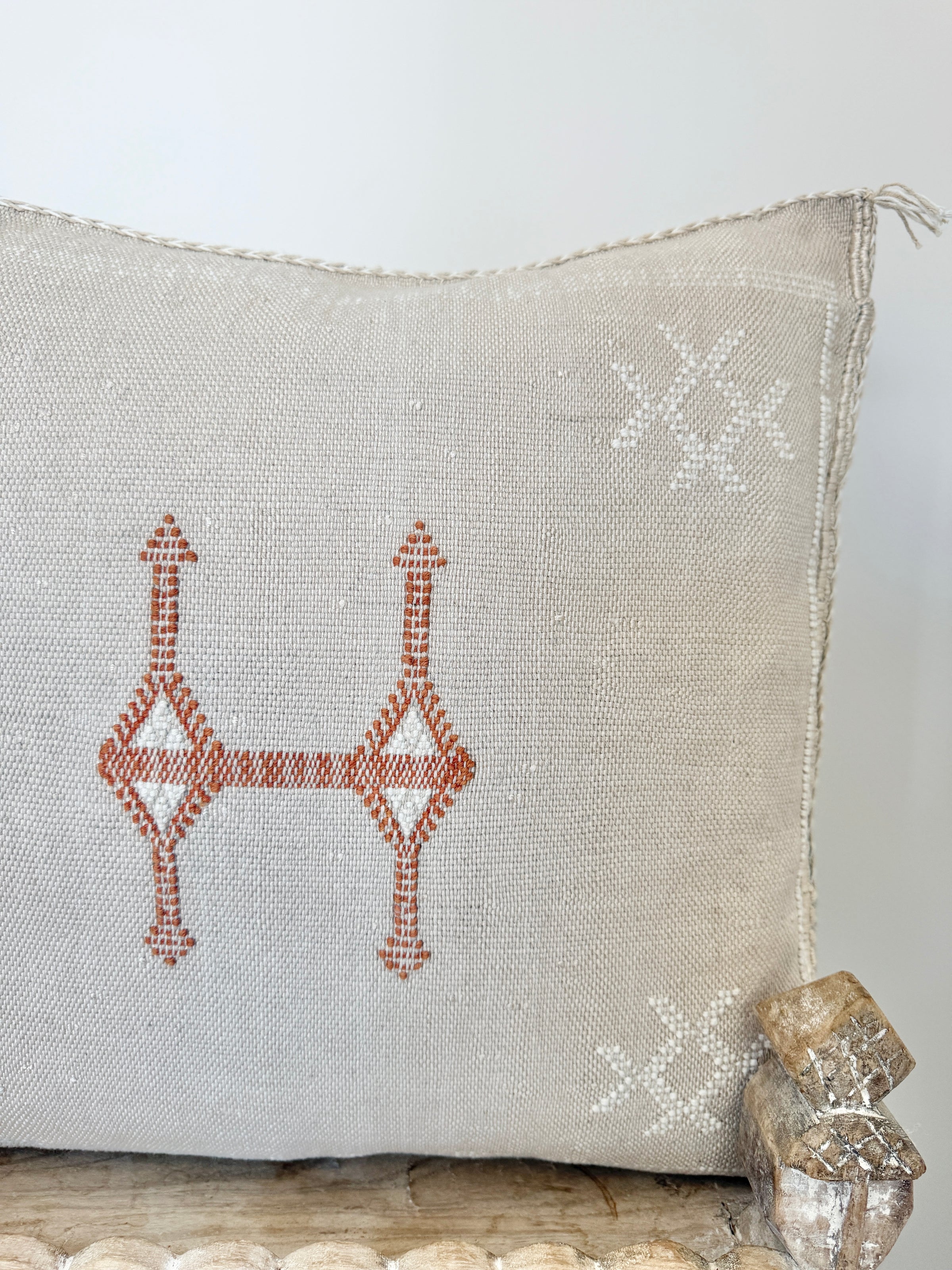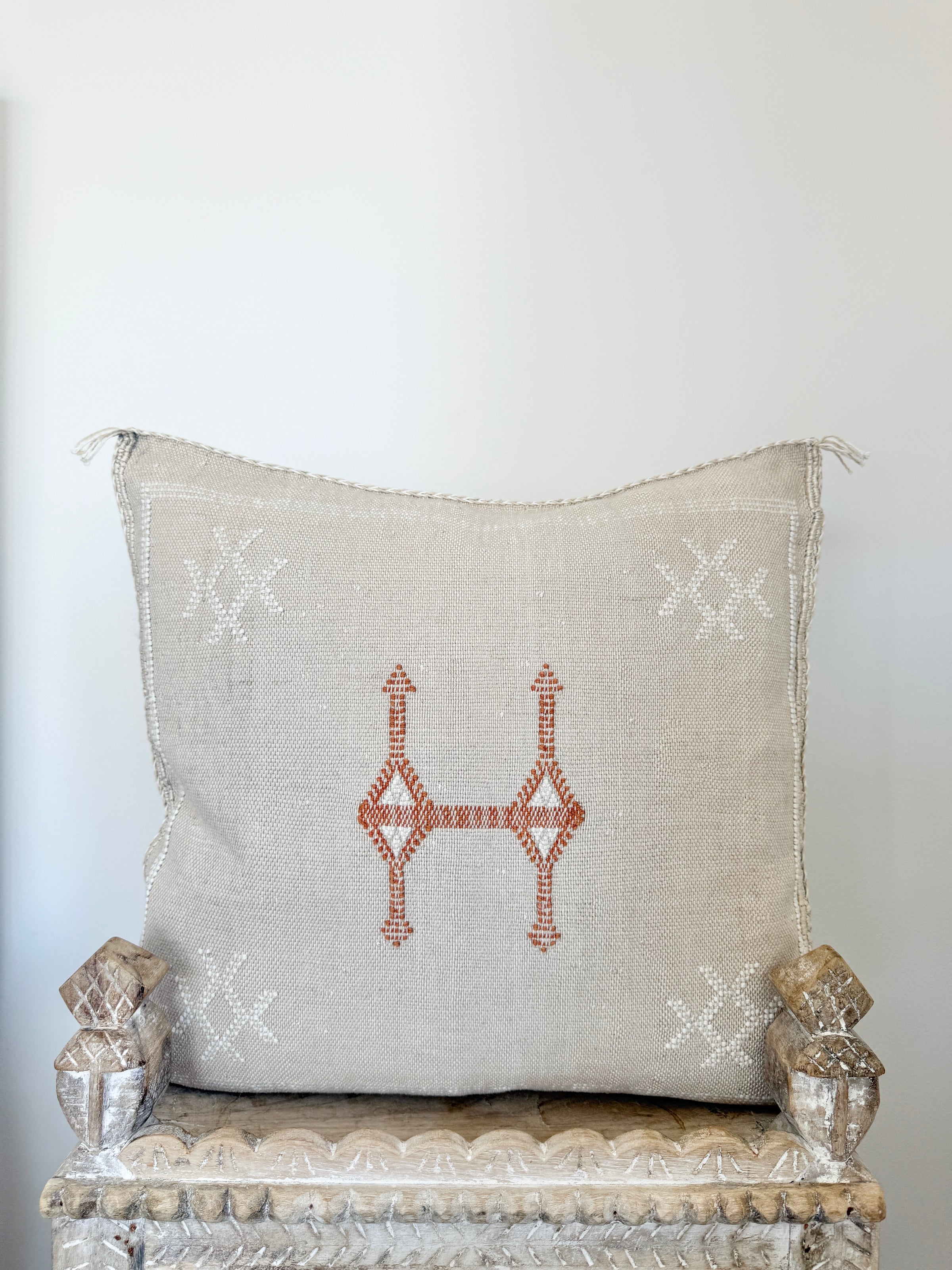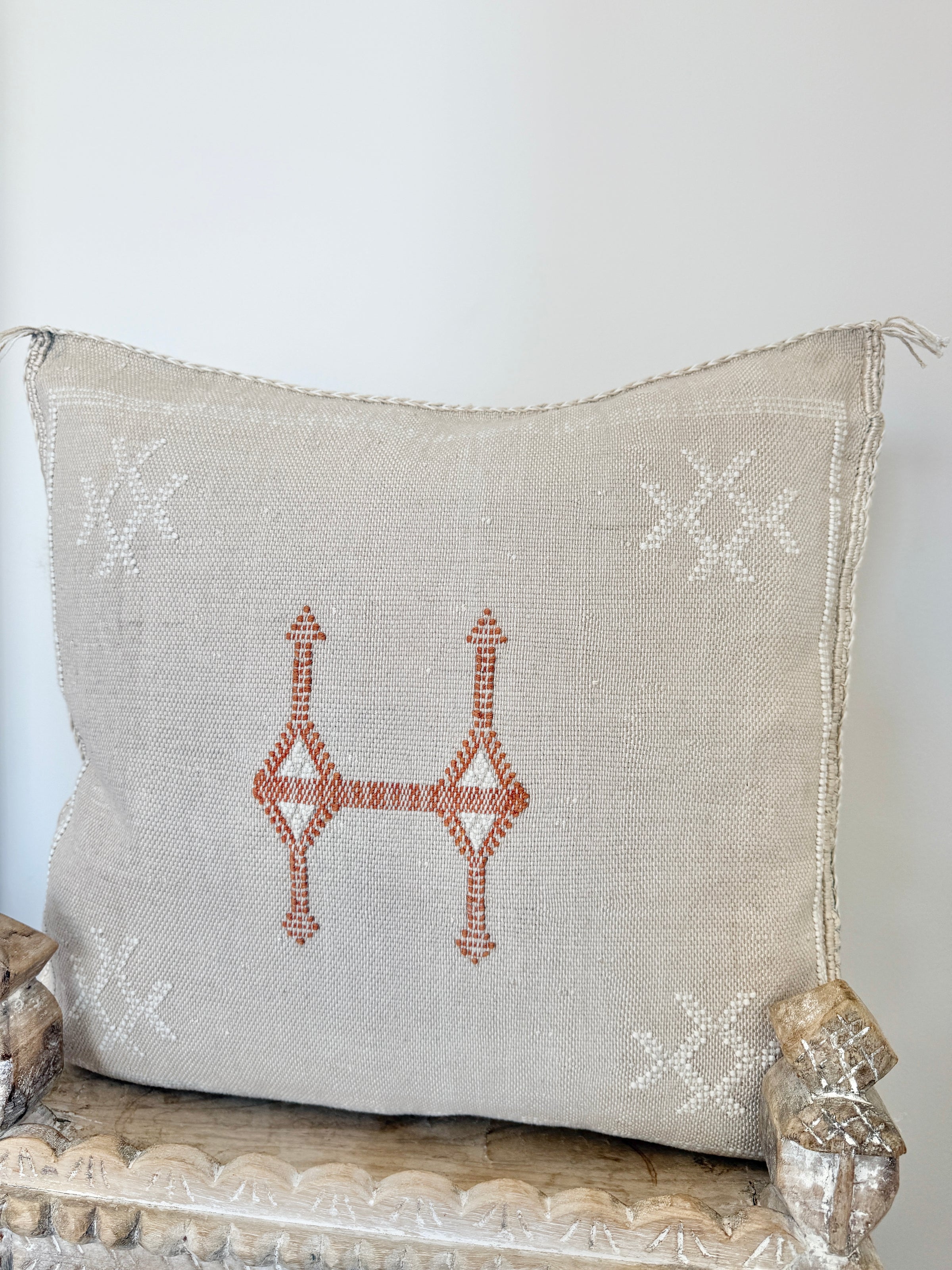 Many of our Moroccan products are handmade, vintage, and one-of a kind. Each piece varies in make, colour, design, size, and feature. It is not uncommon to have uneven stitching, different coloured stitching in areas and small imperfections these unique cushions are not made perfectly by a machine. Each is handmade by our artisans in Morocco and most are one of a kind, however sometimes we can get 2 or 3 of the same cushion. If you are after 2 of the same simply add to your cart and see if it allows you to check out if not then you know there is only one in stock or please don’t hesitate to contact us. We do our best to photograph the uniqueness of each item and provide adequate details. If you are looking for something specific, we recommend that you contact us directly so we may support you getting exactly what you are looking for and avoid exchange shipping fees.