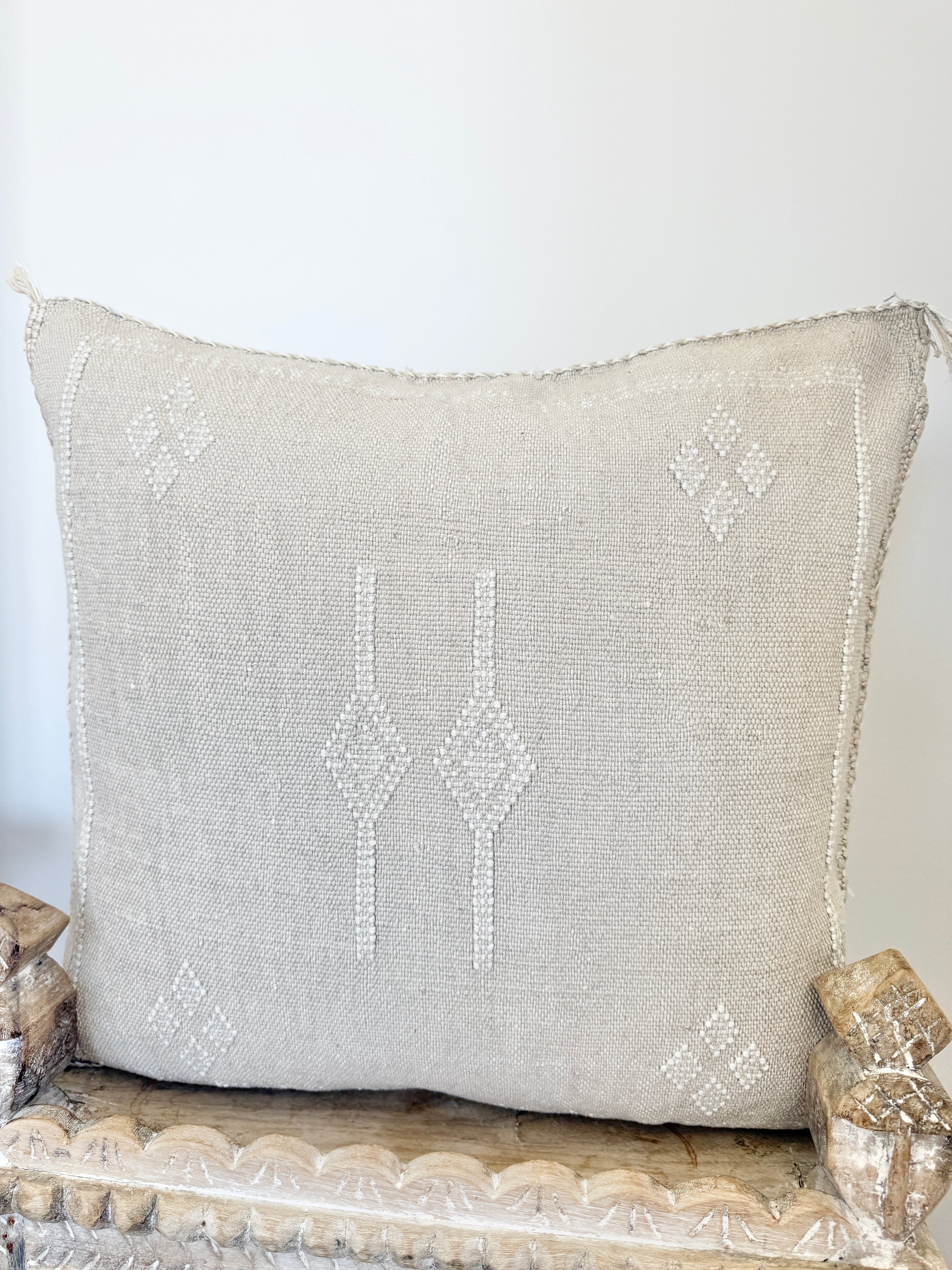 Many of our Moroccan products are handmade, vintage, and one-of a kind. Each piece varies in make, colour, design, size, and feature. It is not uncommon to have uneven stitching, different coloured stitching in areas and small imperfections these unique cushions are not made perfectly by a machine. Each is handmade by our artisans in Morocco and most are one of a kind, however sometimes we can get 2 or 3 of the same cushion. If you are after 2 of the same simply add to your cart and see if it allows you to check out if not then you know there is only one in stock or please don’t hesitate to contact us. We do our best to photograph the uniqueness of each item and provide adequate details. If you are looking for something specific, we recommend that you contact us directly so we may support you getting exactly what you are looking for and avoid exchange shipping fees.