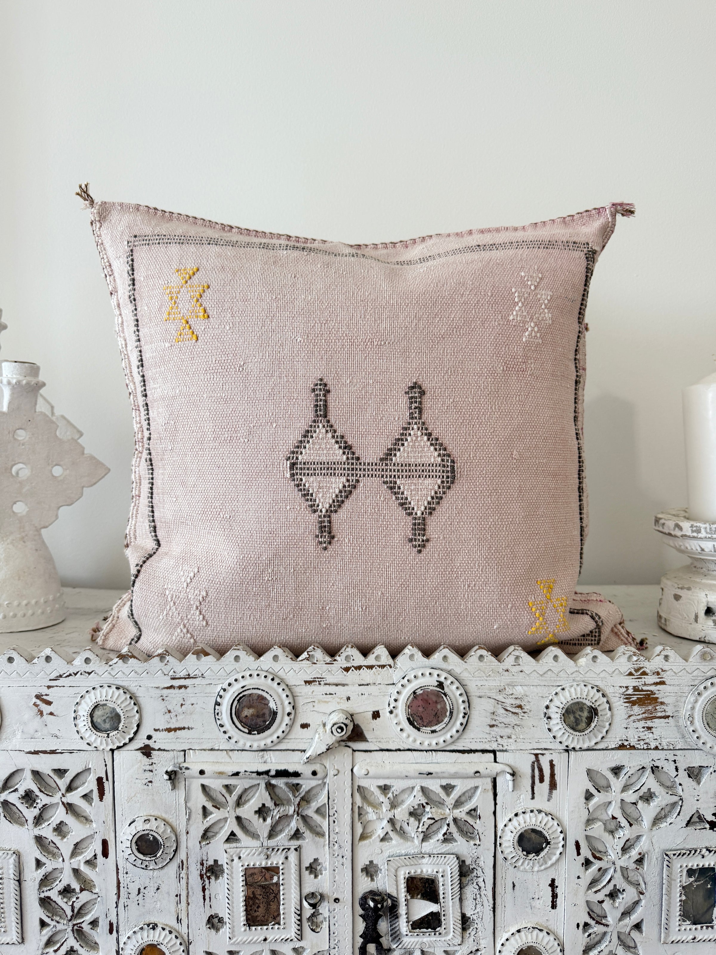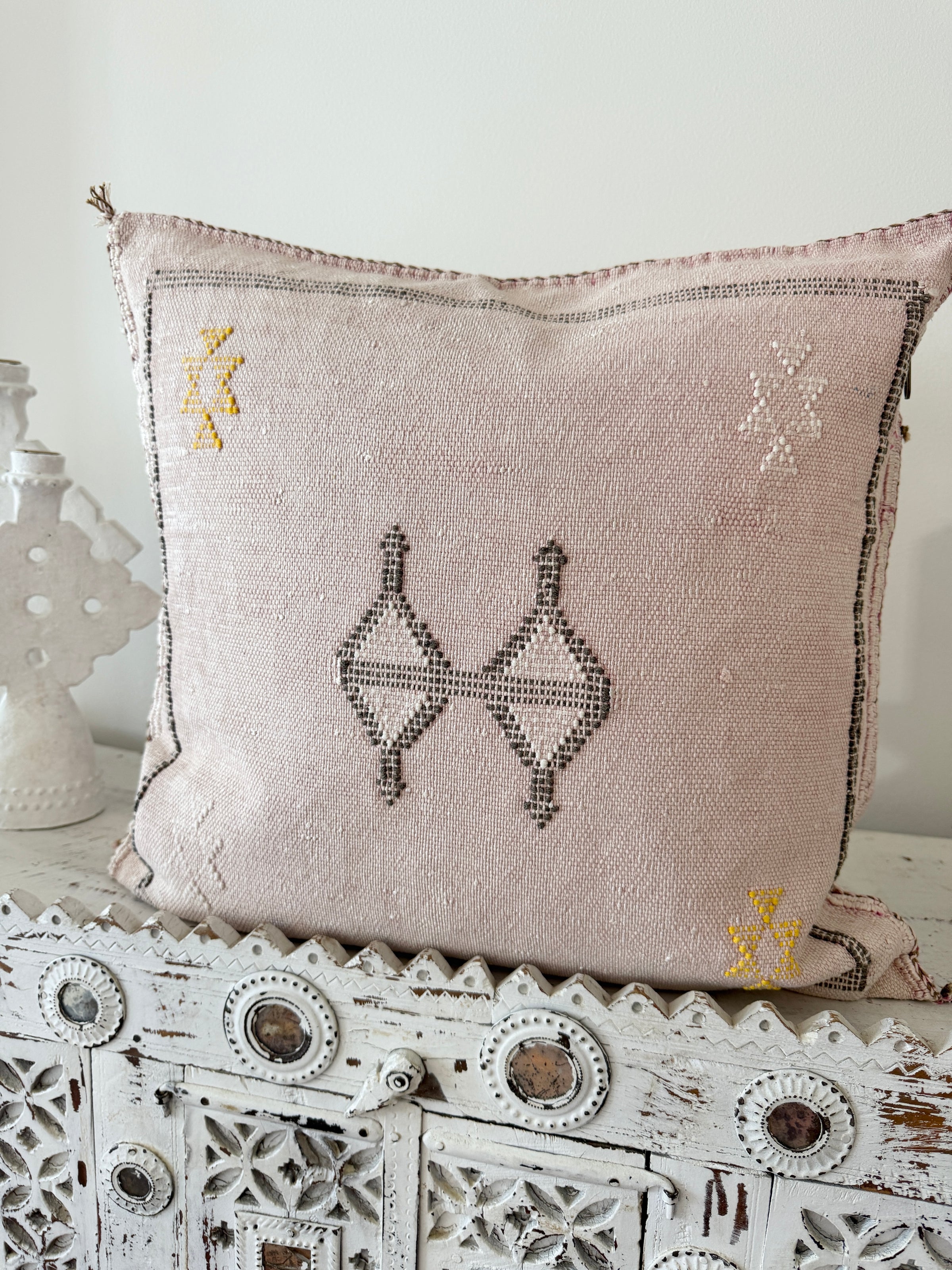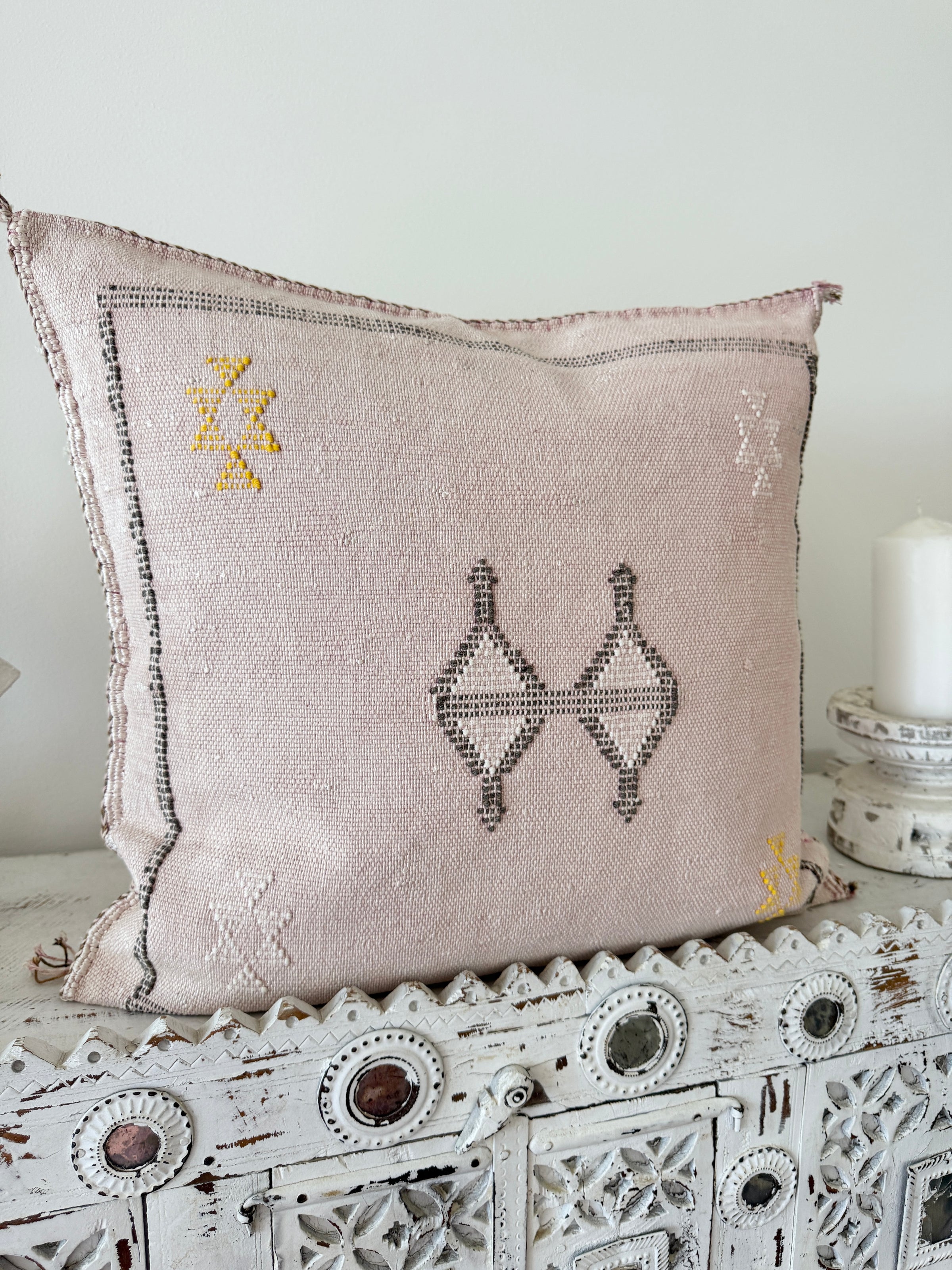 Many of our Moroccan products are handmade, vintage, and one-of a kind. Each piece varies in make, colour, design, size, and feature. It is not uncommon to have uneven stitching, different coloured stitching in areas and small imperfections these unique cushions are not made perfectly by a machine. Each is handmade by our artisans in Morocco and most are one of a kind, however sometimes we can get 2 or 3 of the same cushion. If you are after 2 of the same simply add to your cart and see if it allows you to check out if not then you know there is only one in stock or please don’t hesitate to contact us. We do our best to photograph the uniqueness of each item and provide adequate details. If you are looking for something specific, we recommend that you contact us directly so we may support you getting exactly what you are looking for and avoid exchange shipping fees.