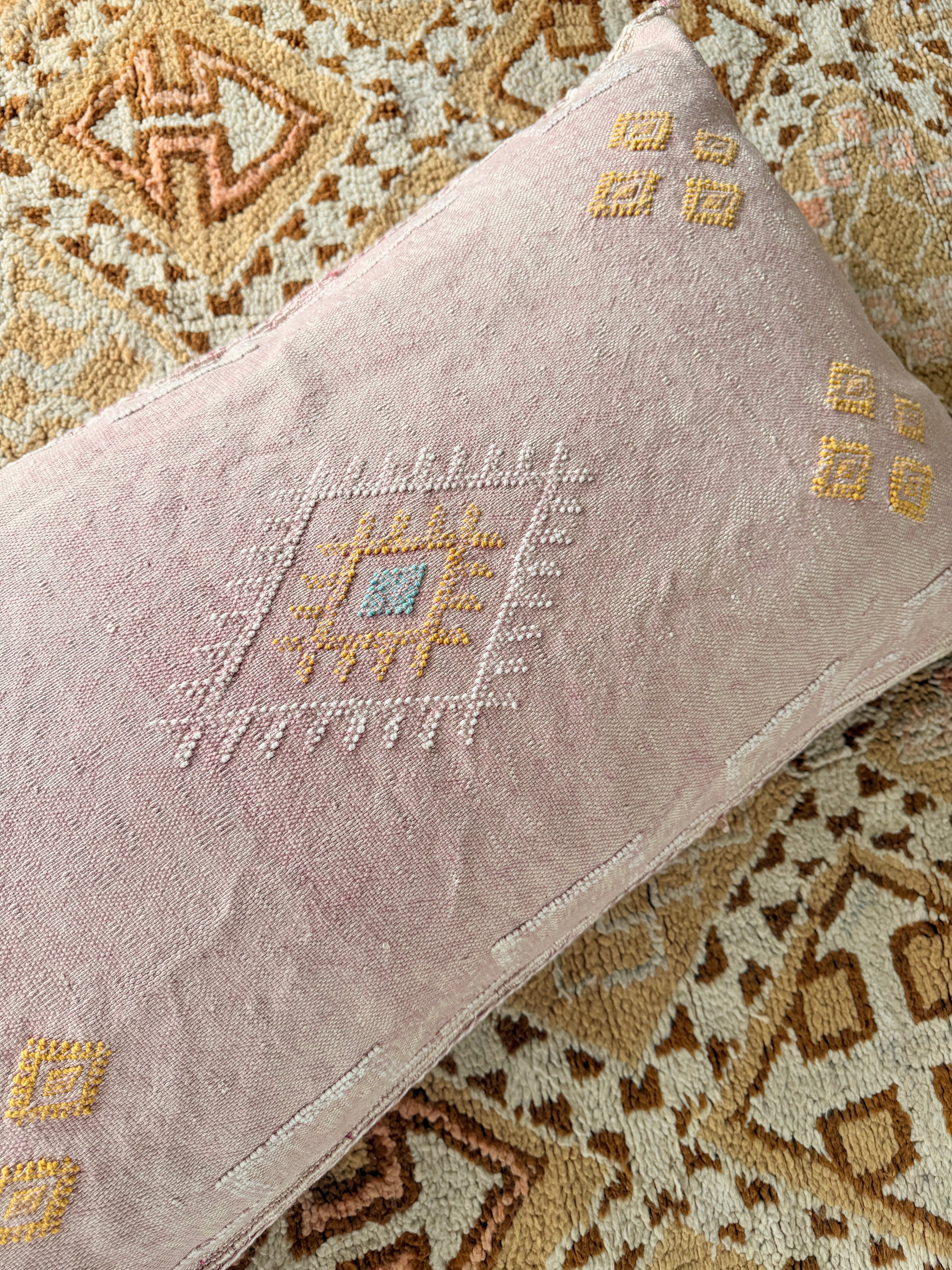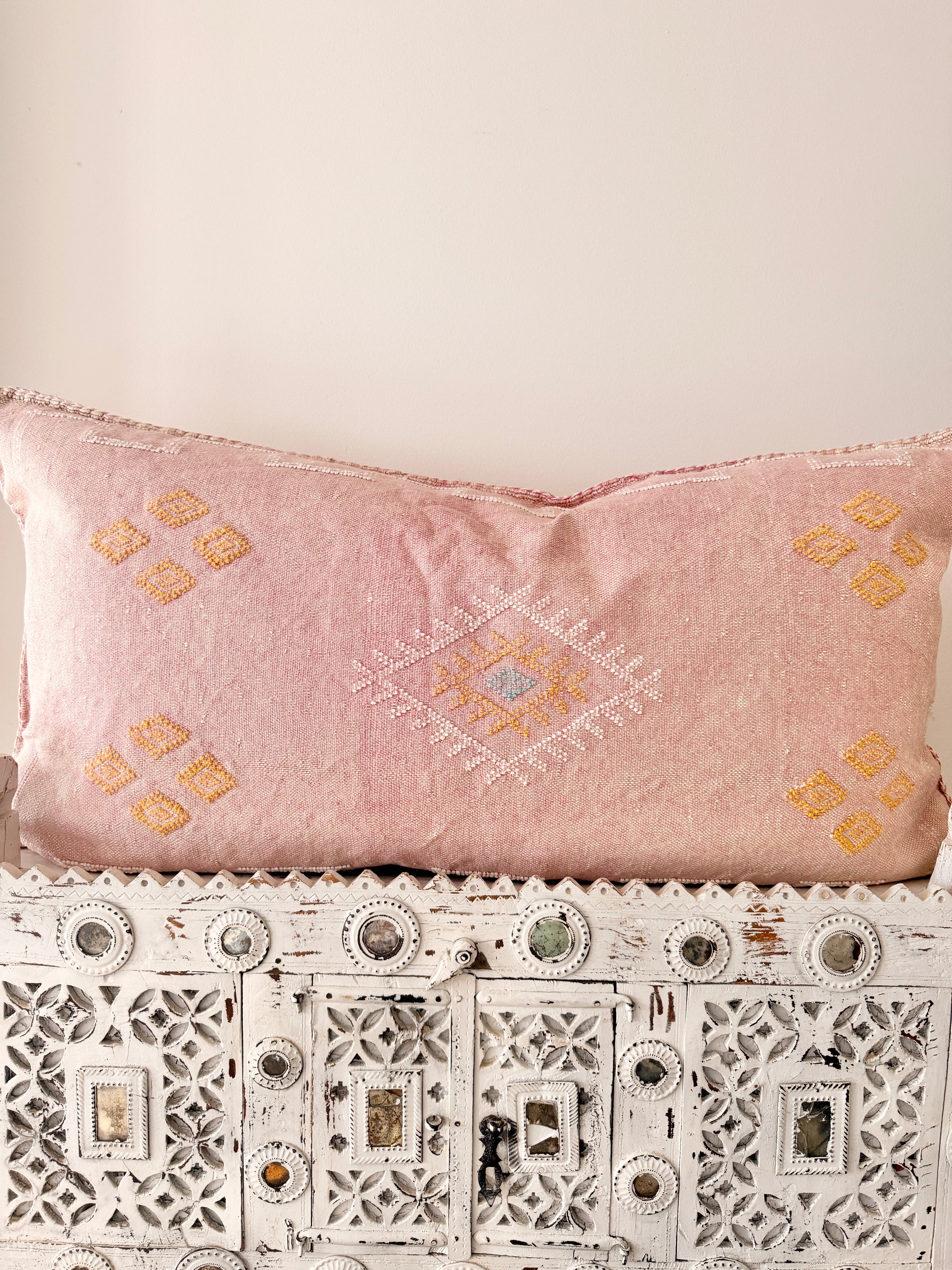 Many of our Moroccan products are handmade, vintage, and one-of a kind. Each piece varies in make, colour, design, size, and feature. It is not uncommon to have uneven stitching, different coloured stitching in areas and small imperfections these unique cushions are not made perfectly by a machine. Each is handmade by our artisans in Morocco and most are one of a kind, however sometimes we can get 2 or 3 of the same cushion. If you are after 2 of the same simply add to your cart and see if it allows you to check out if not then you know there is only one in stock or please don’t hesitate to contact us. We do our best to photograph the uniqueness of each item and provide adequate details. If you are looking for something specific, we recommend that you contact us directly so we may support you getting exactly what you are looking for and avoid exchange shipping fees.