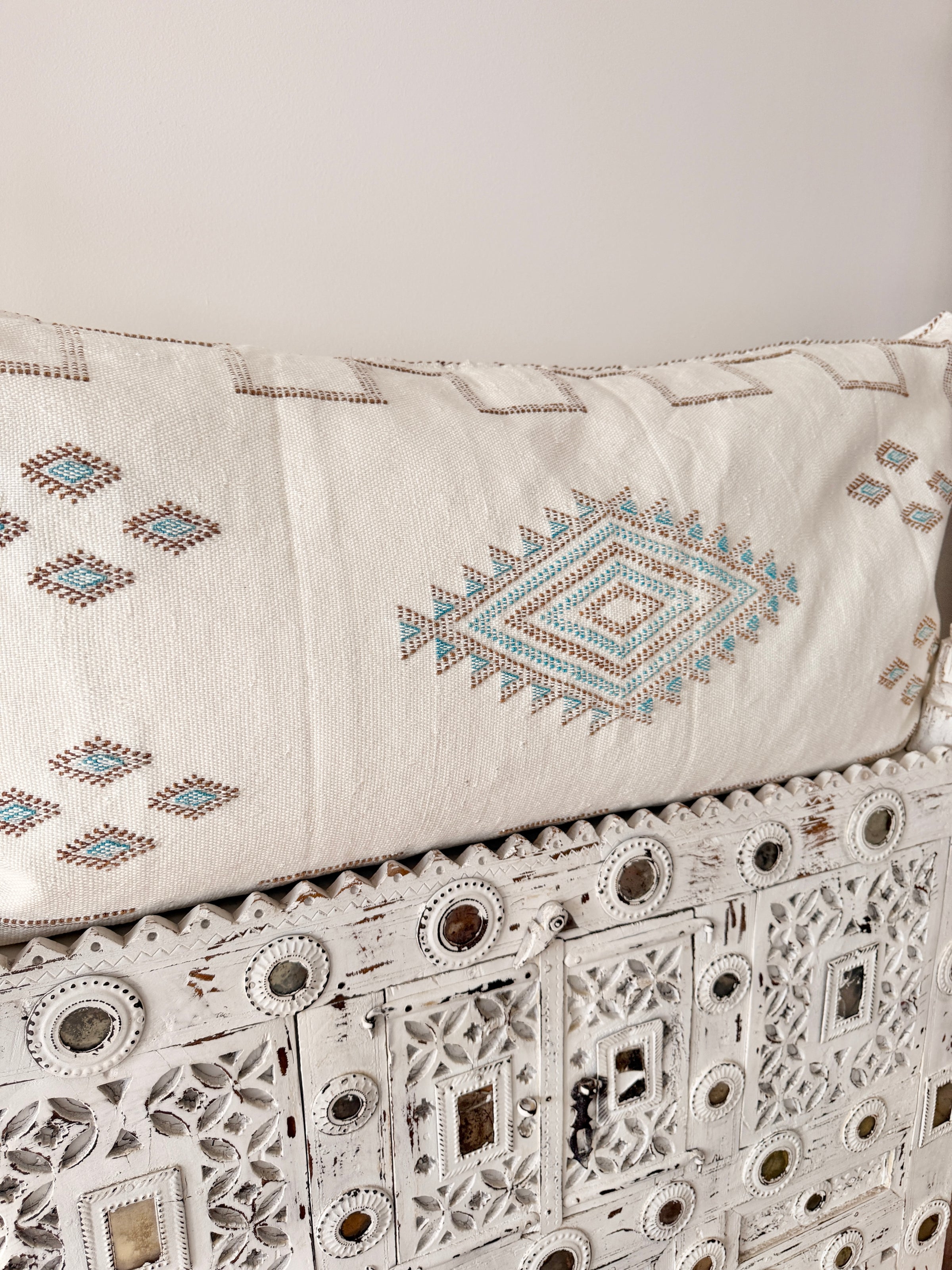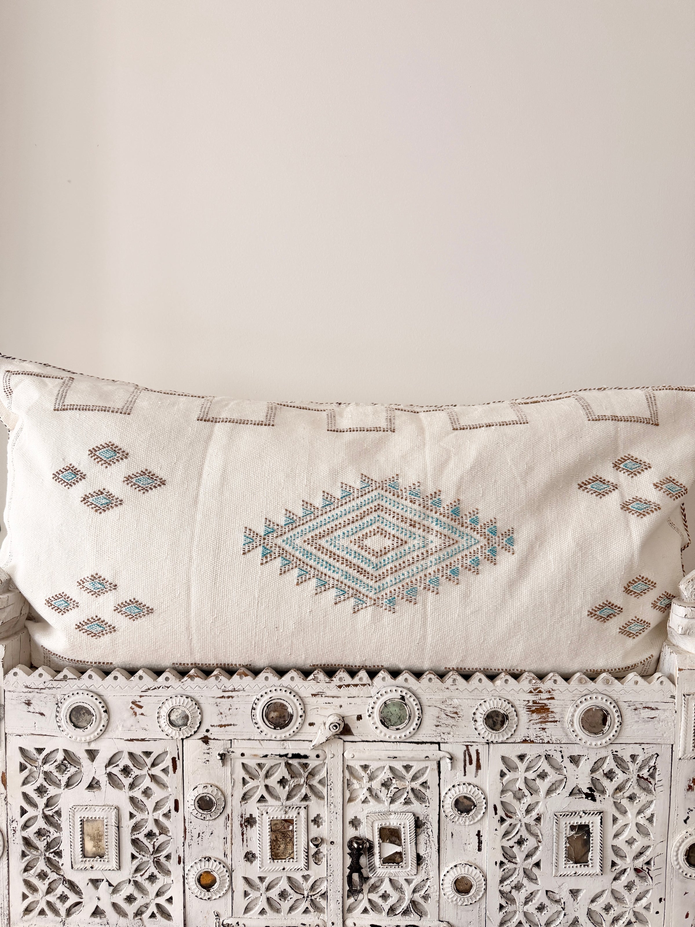 Many of our Moroccan products are handmade, vintage, and one-of a kind. Each piece varies in make, colour, design, size, and feature. It is not uncommon to have uneven stitching, different coloured stitching in areas and small imperfections these unique cushions are not made perfectly by a machine. Each is handmade by our artisans in Morocco and most are one of a kind, however sometimes we can get 2 or 3 of the same cushion. If you are after 2 of the same simply add to your cart and see if it allows you to check out if not then you know there is only one in stock or please don’t hesitate to contact us. We do our best to photograph the uniqueness of each item and provide adequate details. If you are looking for something specific, we recommend that you contact us directly so we may support you getting exactly what you are looking for and avoid exchange shipping fees.