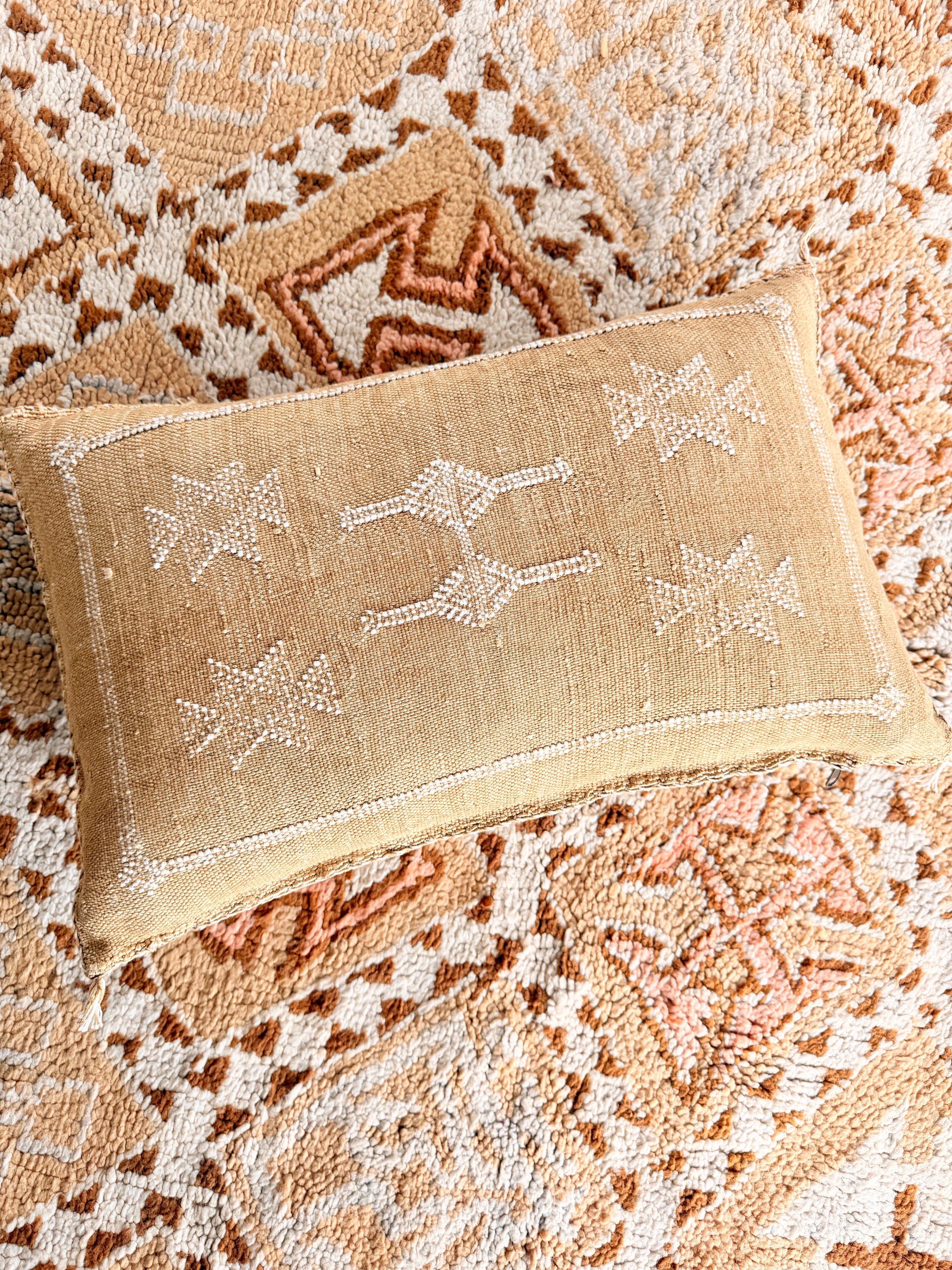 Many of our Moroccan products are handmade, vintage, and one-of a kind. Each piece varies in make, colour, design, size, and feature. It is not uncommon to have uneven stitching, different coloured stitching in areas and small imperfections these unique cushions are not made perfectly by a machine. Each is handmade by our artisans in Morocco and most are one of a kind, however sometimes we can get 2 or 3 of the same cushion. If you are after 2 of the same simply add to your cart and see if it allows you to check out if not then you know there is only one in stock or please don’t hesitate to contact us. We do our best to photograph the uniqueness of each item and provide adequate details. If you are looking for something specific, we recommend that you contact us directly so we may support you getting exactly what you are looking for and avoid exchange shipping fees.