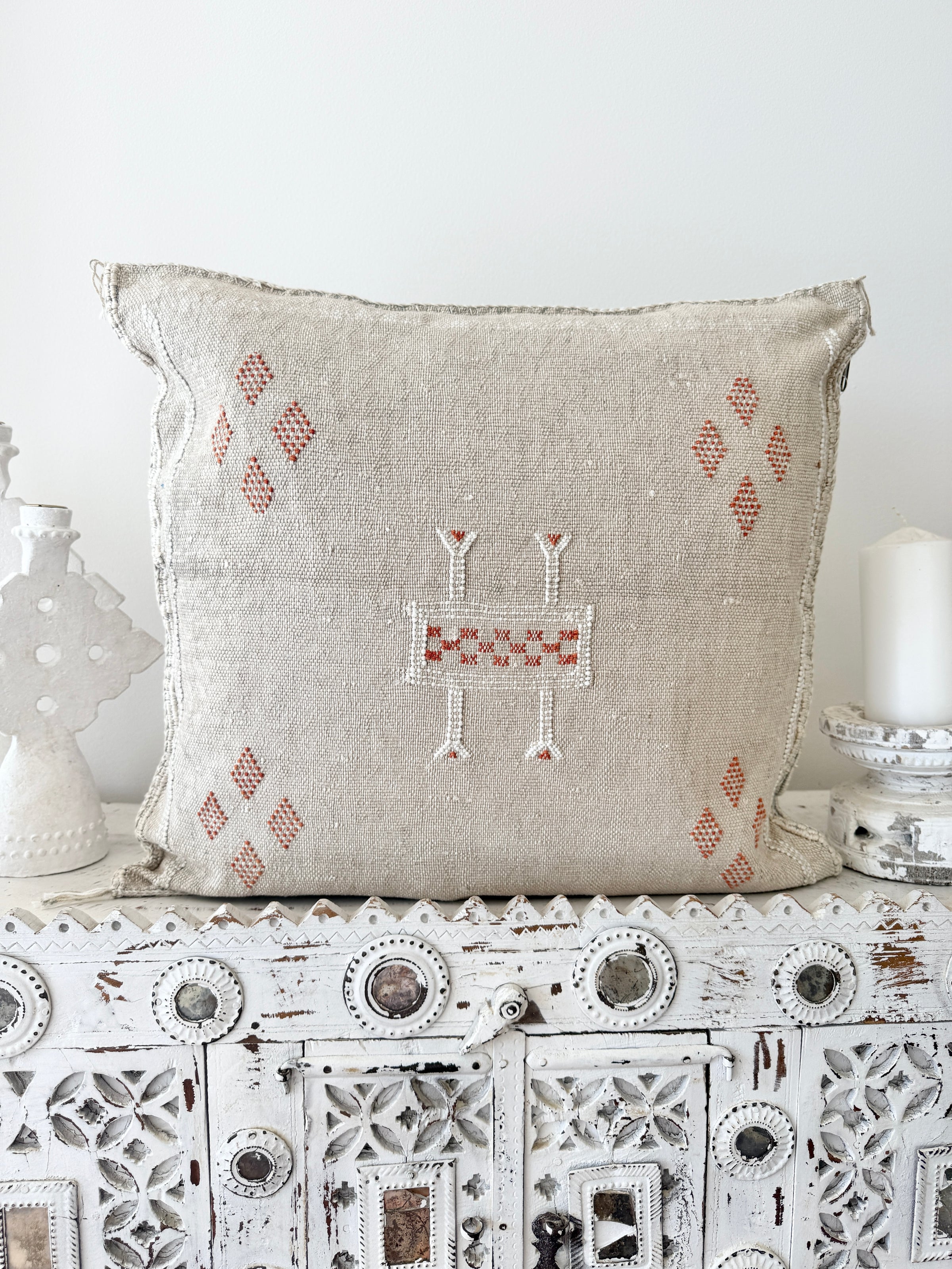 Many of our Moroccan products are handmade, vintage, and one-of a kind. Each piece varies in make, colour, design, size, and feature. It is not uncommon to have uneven stitching, different coloured stitching in areas and small imperfections these unique cushions are not made perfectly by a machine. Each is handmade by our artisans in Morocco and most are one of a kind, however sometimes we can get 2 or 3 of the same cushion. If you are after 2 of the same simply add to your cart and see if it allows you to check out if not then you know there is only one in stock or please don’t hesitate to contact us. We do our best to photograph the uniqueness of each item and provide adequate details. If you are looking for something specific, we recommend that you contact us directly so we may support you getting exactly what you are looking for and avoid exchange shipping fees.