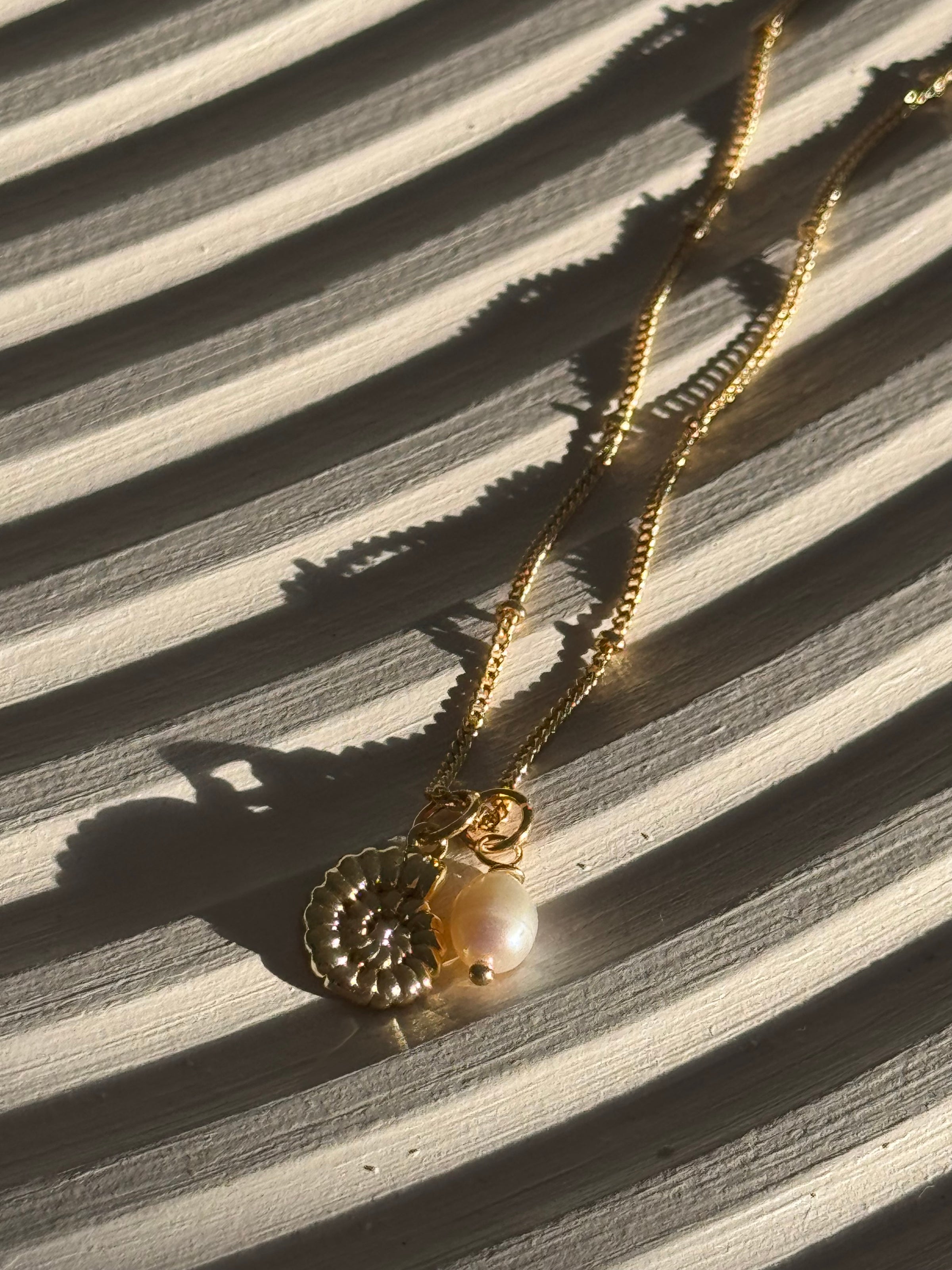 ‘The Trinket Collective’s Swell Gypsy necklace is handmade , this necklace features a trendy conch shell pendant attatched to a dainty chain, with a small freshwater pearl. The chain is also adjustable, so it can fit about anyone! No matter the occasion, this necklace is sure to impress. This beautiful piece is made of 14k gold plated brass. The ocean-inspired details make it perfect as a gift, or even a sneaky present for yourself! 🤭💕✨