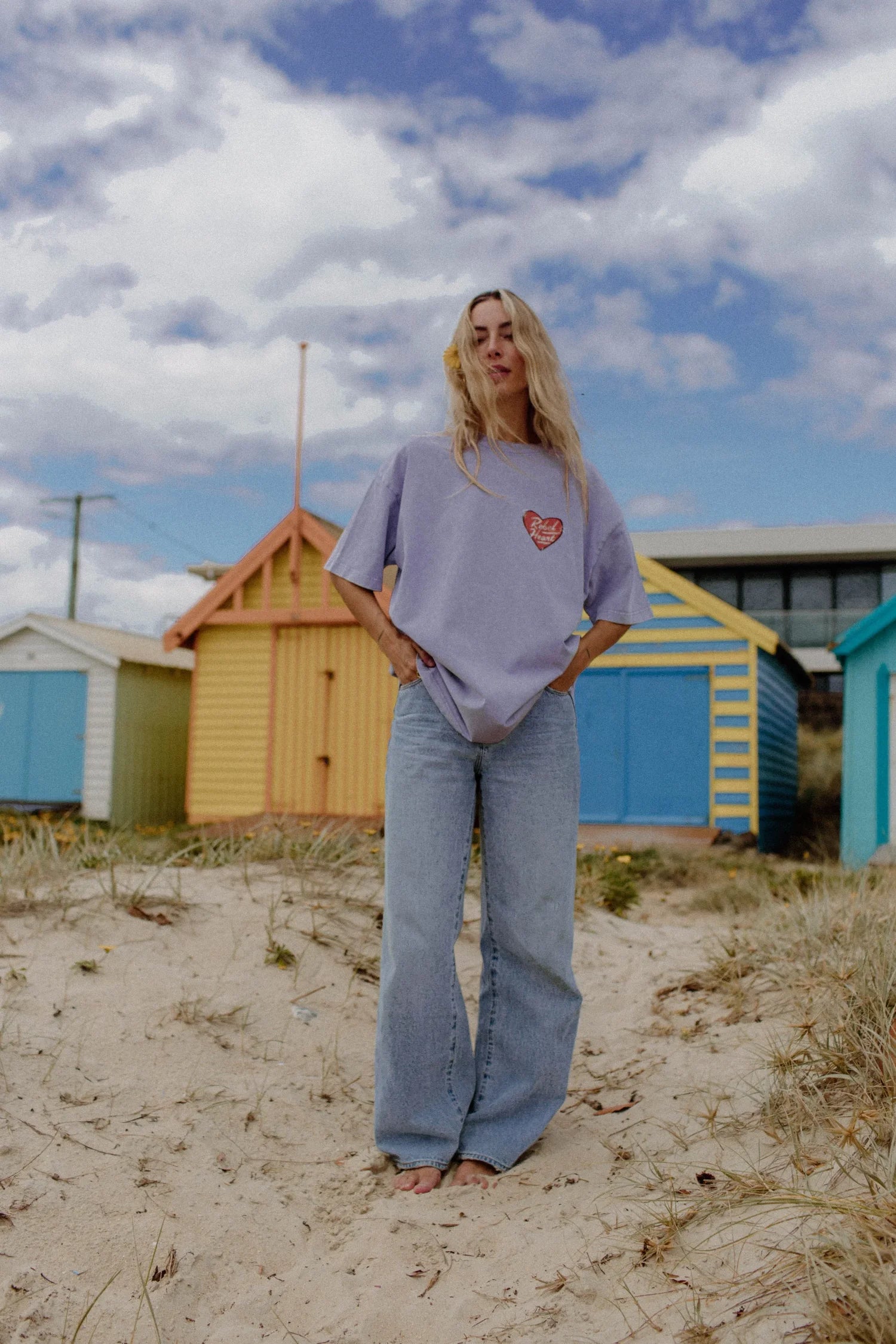 Rebel Heart Oversized Shirt Acid Wash Purple