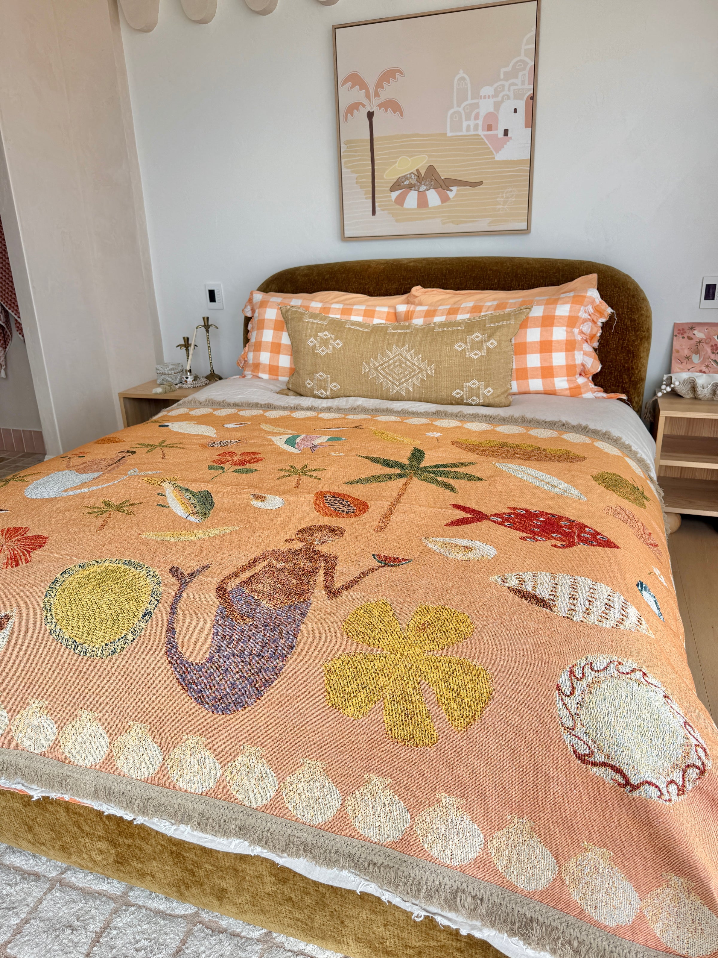 Ā Our Abundance throw is a celebration of Gabrielle Diamantis’ artistry, combining two of her captivating original works — Abundance and Land & Sea #1. The design is anchored by her original piece Abundance, with elements from Land & Sea #1 carefully woven in to extend the composition and fit perfectly as a throw.Ā Together, these pieces showcase the vibrant creativity of Sunshine Coast artist Gabrielle Diamantis.